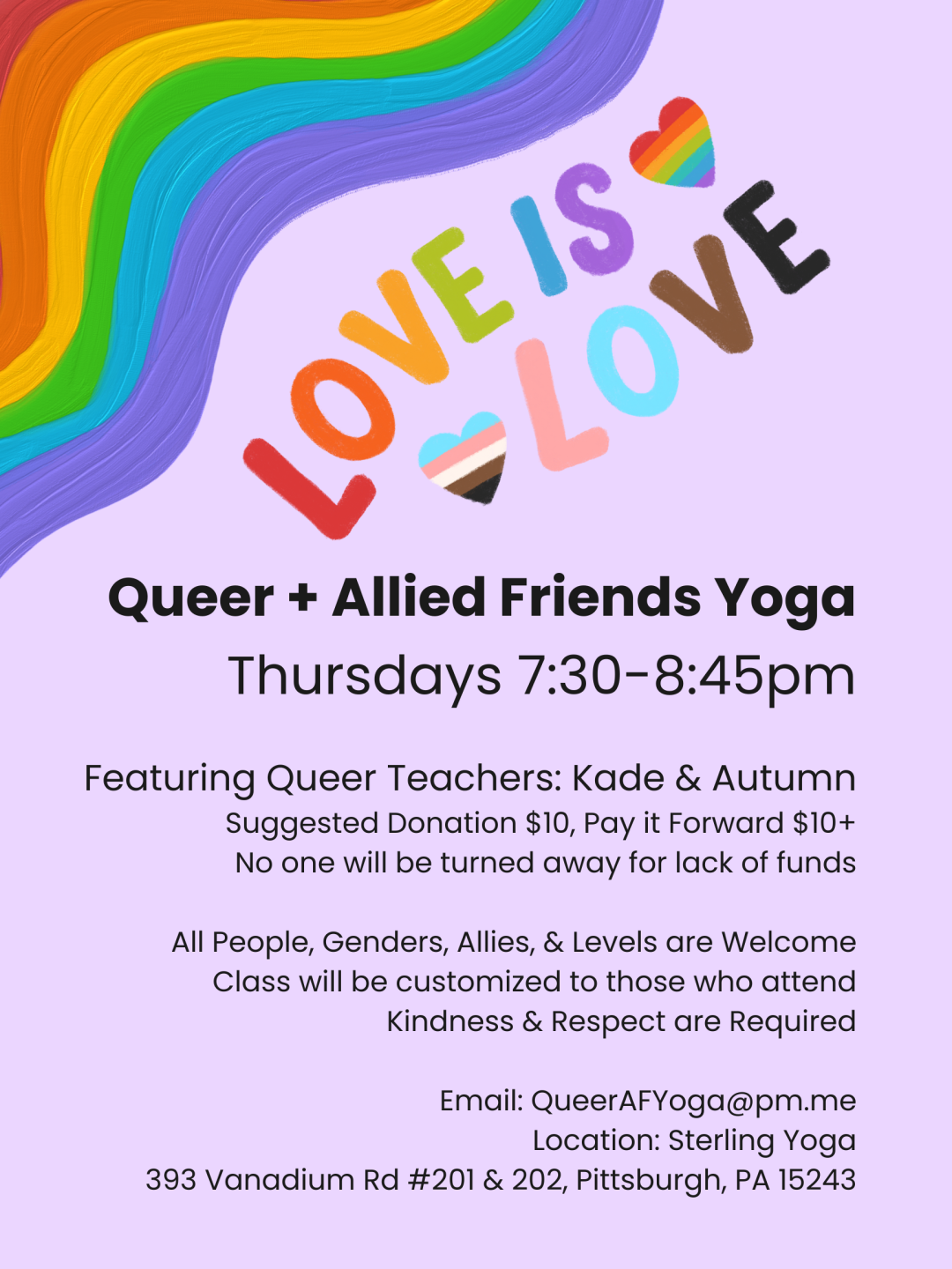 Join us for an inclusive, affirming, and welcoming yoga class designed specifically for the LGBTQ+ community and our allies. This all-levels, all-genders class embraces diversity, offering modifications for all abilities so everyone can feel comfortable and supported. We use props (available at the studio) to help align the body, ensuring each participant can practice at their own pace and with confidence using Iyengar principles. Whether you're new to yoga or a seasoned practitioner, you’ll receive personalized attention to help you explore poses safely and mindfully.You must sign-in to book a spot in this class.